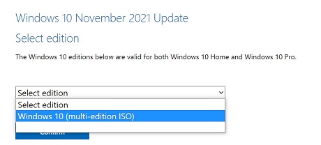 15. Under ‘Select edition‘, select ‘Windows 10 November 2021 Update‘.