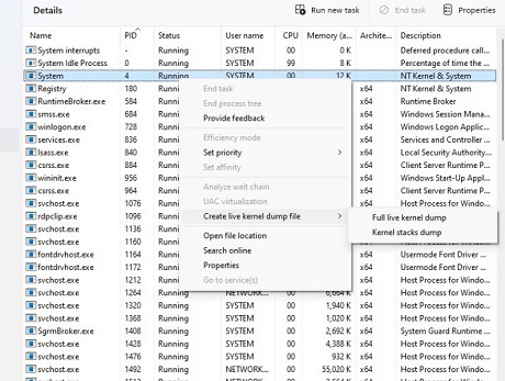 More common tasks have been moved to a bar across the top, making room for new options in Task Manager. In Windows 11 Build 22588, Microsoft is testing a new feature that lets you generate kernel or full crash dump via Task Manager. For those unaware, the dump file is automatically generated when Windows can’t run correctly due to BSOD.