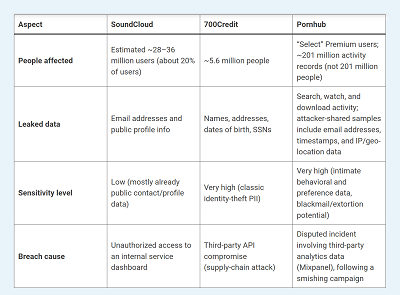 Comparing apples and orangesAs you can see, these are three very different data breaches. Not just in how they happened, but in what they mean for the people affected.