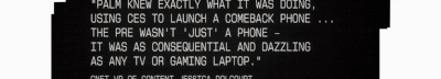 "Palm knew exactly what it was doing using CES to launch a comeback phone with a daring new OS," recalls Jessica Dolcourt, now CNET's vice president of content, who was, at the time, an editor covering mobile technology. "It was a brilliant play that said the Pre wasn't 'just' a phone — it was as consequential and dazzling as any TV or gaming laptop."
